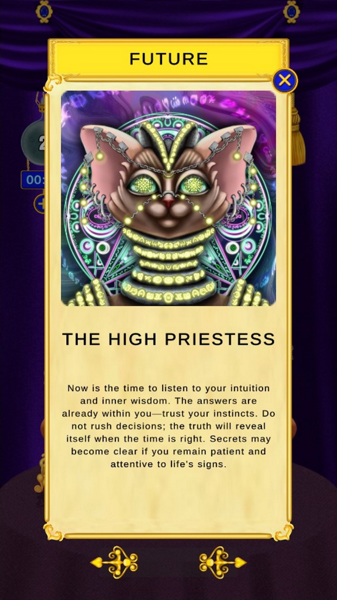 — Interactive Tarot Reading: Explore the 22 Major Arcana in an engaging gameplay experience.